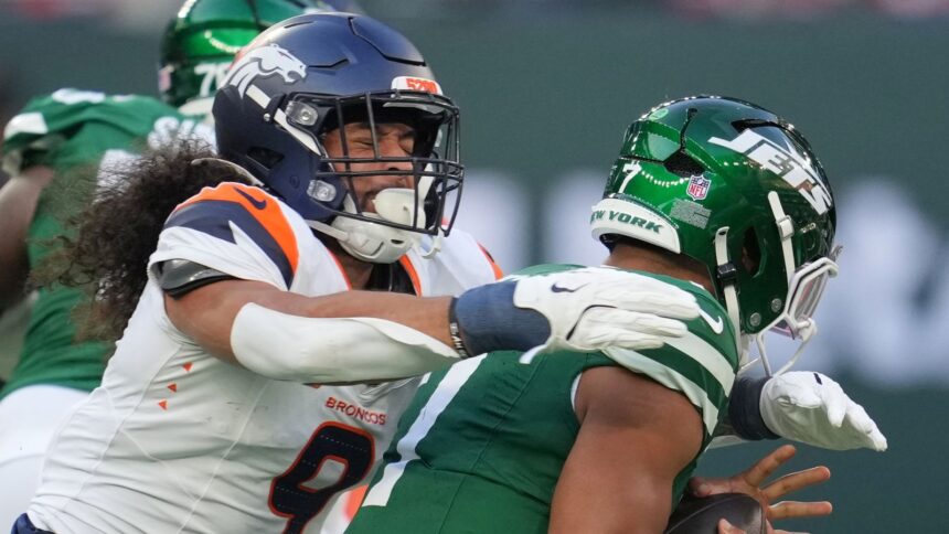 Aaron Glenn’s still-winless team managed just 32 net yards and two first downs in a disjointed first half, but remarkably remained in touching distance after Nate Adkins put Denver (4-2) on top with the only touchdown of the game.