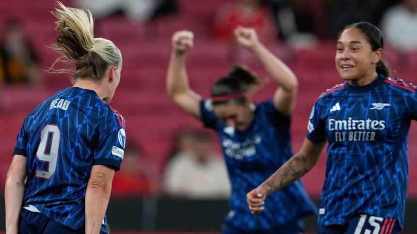 Holders Arsenal bounced back from defeat to Lyon in their opening game with a 2-0 victory against Benfica in the Women’s Champions League.