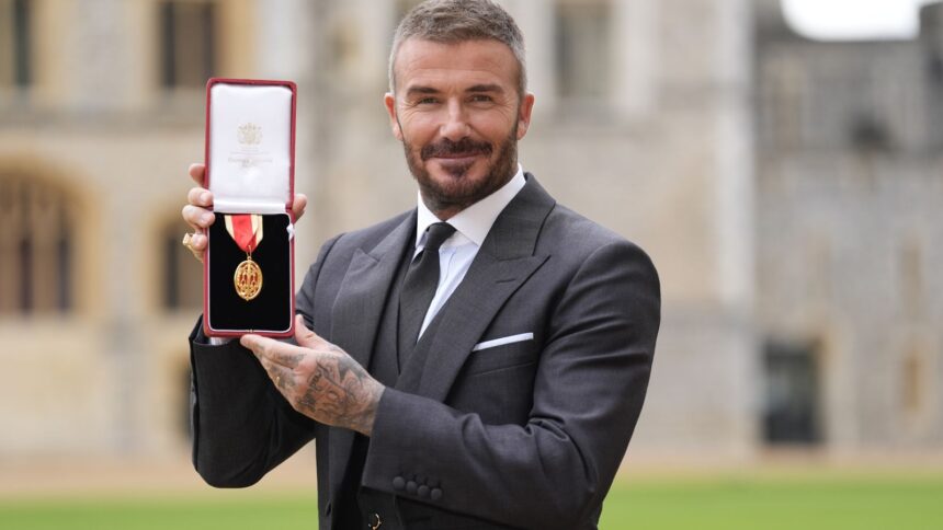 David Beckham has been knighted by King Charles at Windsor Castle for services to sport and charity.
