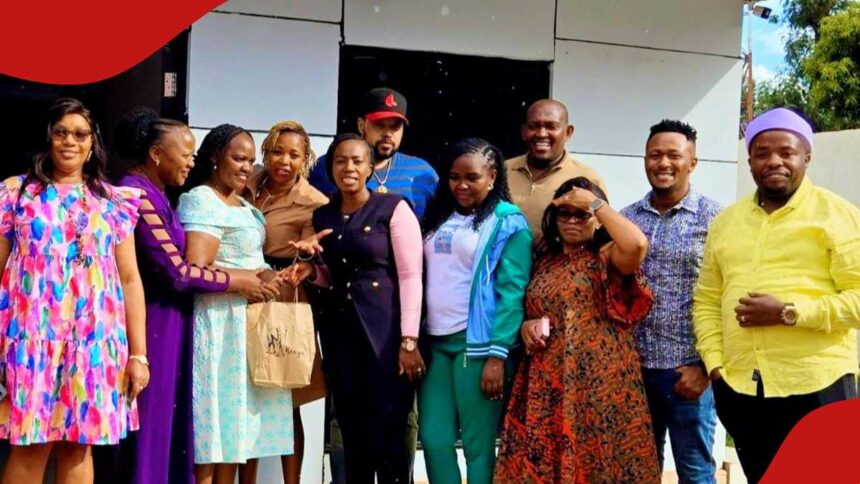 In the photos shared by Karangu wa Muraya, the team posed outside a building believed to be one of the structures Bayo was building before her death.