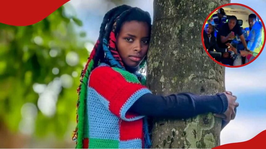 In a video, the young woman was captured lying inside an ambulance, frail and exhausted after standing non-stop while hugging a tree for three days.