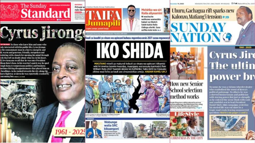 The newspapers on Sunday, December 14, covered the tragic crash in which former Lugari MP Cyrus Jirongo died.