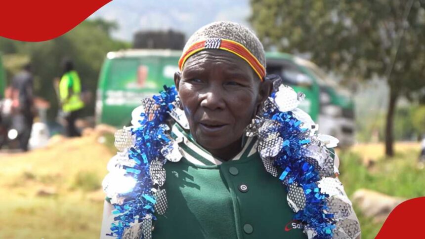 The elderly woman, identified as Talaa Maria Chelanga, won the prize after participating in Safaricom’s Shangwe at 25 draw celebrations.