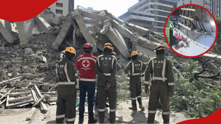 The 16-storey building, located along Kiganjo Muhoho Avenue, caved in, with four people believed to still be trapped beneath the debris.