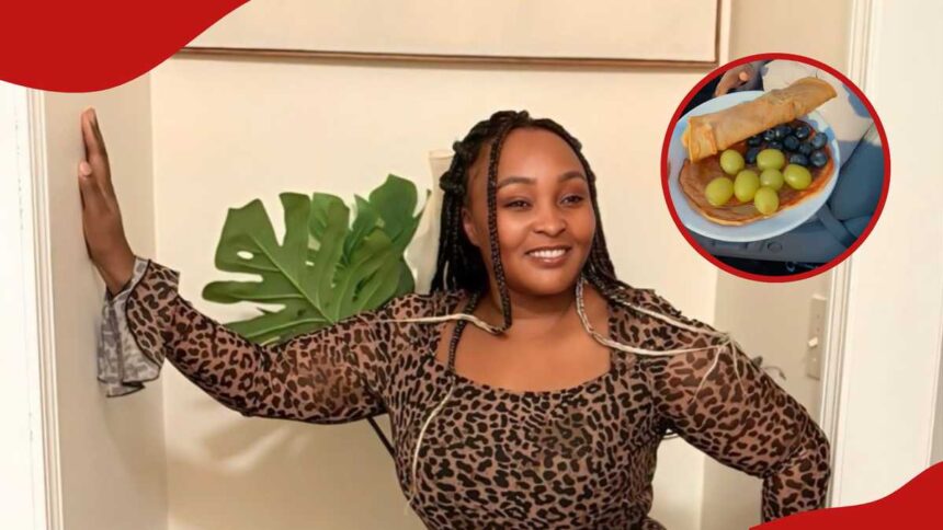“I’m trying to surprise my friend Edday because she always picks my kids from school every morning and she doesn’t have a Valentine’s because her husband is in Kenya. So let’s see how she reacts. A Kenyan pancake, alittle bit of fruit and a rose flower let’s see,” she said.