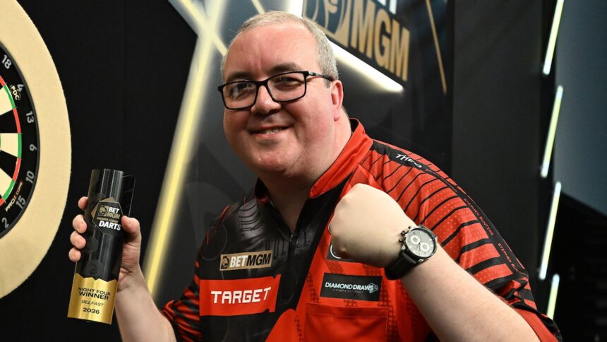 “My body is in overdrive. I am shaking like a leaf. It was a dream come true,” he told Sky Sports’ Polly James. “If I ever played in the Premier League, I’d love to hit a nine-darter in Belfast.