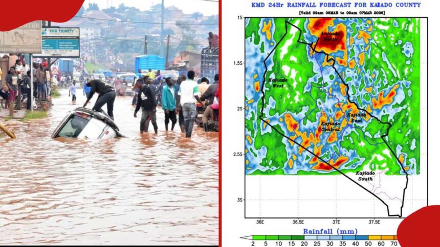 In a notice on its social media page, Kenya Met warned that heavy rains will continue in Nairobi Metropolitan from 9am on March 6 to 9am on March 7, 2026.