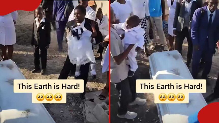 - A video showing two young siblings being passed over their mother’s coffin moments before burial left many social media users shocked