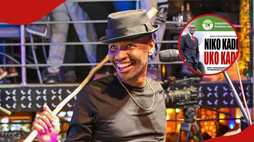 On his latest post, the musician shared a DCP-branded post with his photo on the banner, urging Kenyans to register as voters.