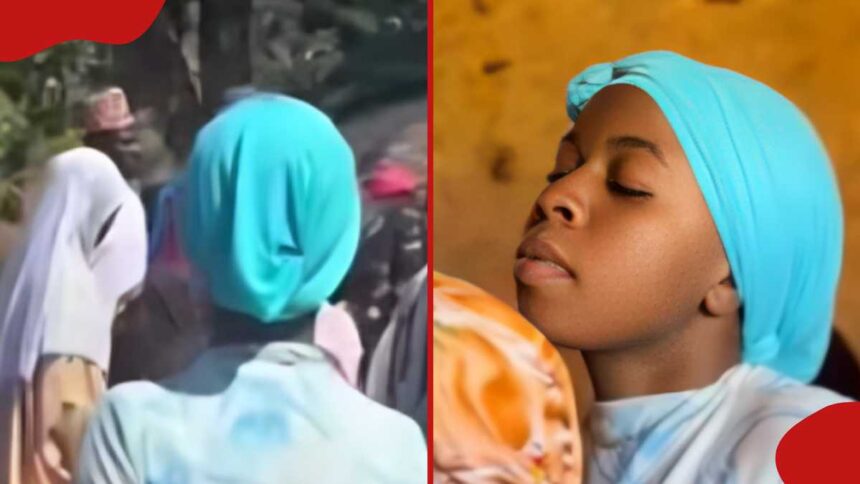In a video shared by Hassan Og, the lady is seen slowly sauntering into the compound, clad in a long, clinging dress and a white headscarf. At first, she stood on the sidelines, then slowly made her way into the house along with a crowd of other people.