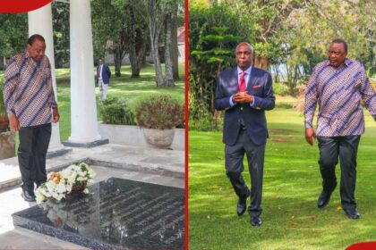 Photos: Gideon Moi Hosts Uhuru Kenyatta in Kabarak as Ex-President Lays Wreath on Moi’s Grave