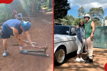 Murang’a Woman Takes American Boyfriend to Village, Teaches Him How to Split Firewood in Funny Video