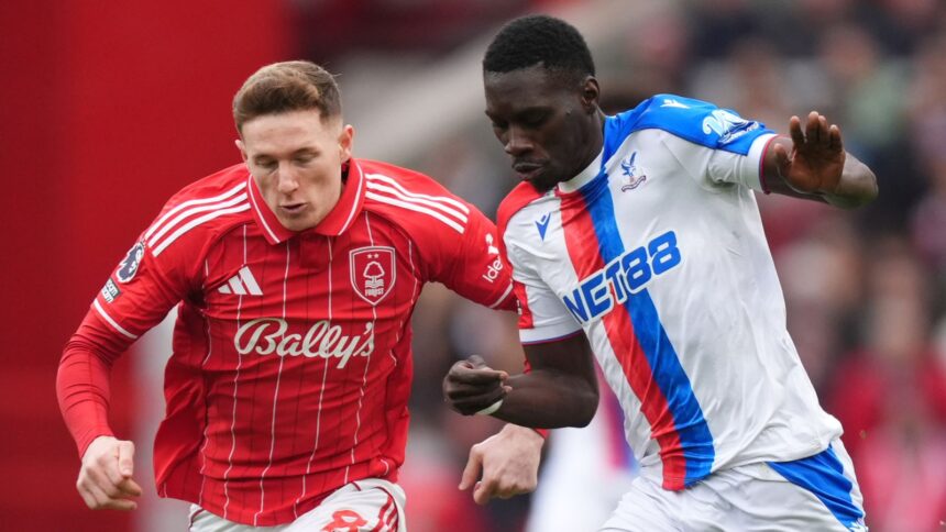 Nottingham Forest held Crystal Palace to a 1-1 draw at the City Ground despite Neco Williams' first-half sending-off.Williams was shown a straight red card by referee Tony Harrington when he…